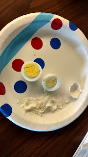 Now we could see the chalazae! Do you know what the chalazae does? It is the little white cord on either side of the yolk that helps to keep it centered in the white (albumen). This is very important when the embryo is developing (but not so important if we are going to scramble the eggs for breakfast!)