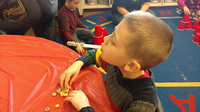 Each year, for the Valentine's Day Party, we play "Minute-to-Win-It" games. Each station has a different task that students are challenged to complete in one minute or less!